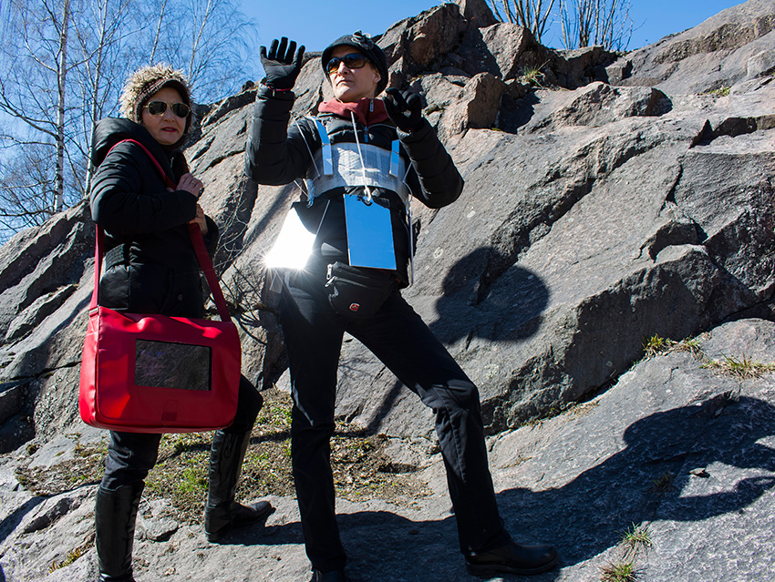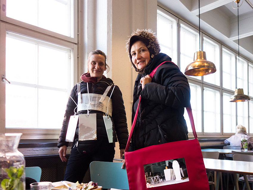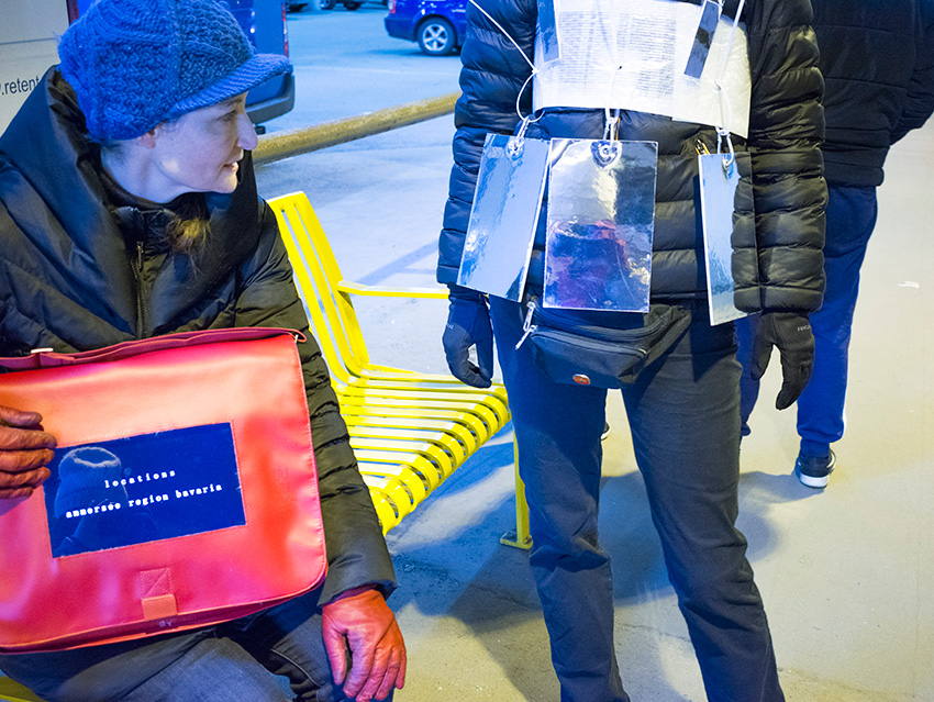 Wir haben uns für die Städte Rom und Helsinki entschieden, da wir anhand des Themas „innen & außen“ das Klischee der Arbeitsweise der dort vor Ort ansässigen Künstler überprüfen wollen. Sind die italienischen Künstler extrovertiert und die finnischen Künstler introvertiert und melancholisch und die Deutschen dazwischen? Auch spiegelt die Thematik indirekt einen weiteren referenziellen Bezugspunkt in unserem Projekt: das groß und klein der Projektionsarten und die Außenprojektion (Performance) und Innenraumprojektion der Filme. Letztendlich das Innen und Außen der Tasche. Was haben die unterschiedlichen Spielarten der Projektion für eine Auswirkung auf das Kunstwerk?