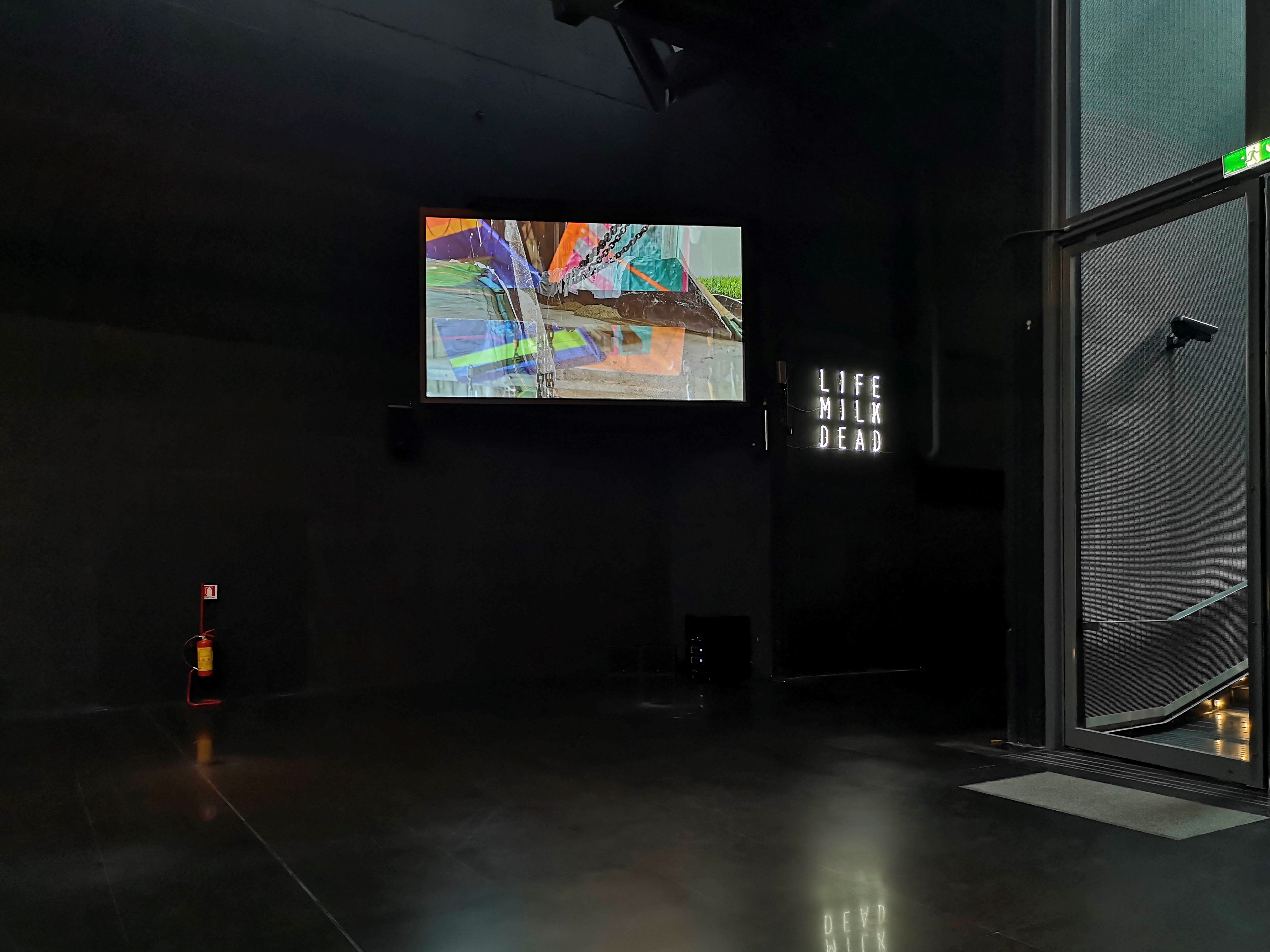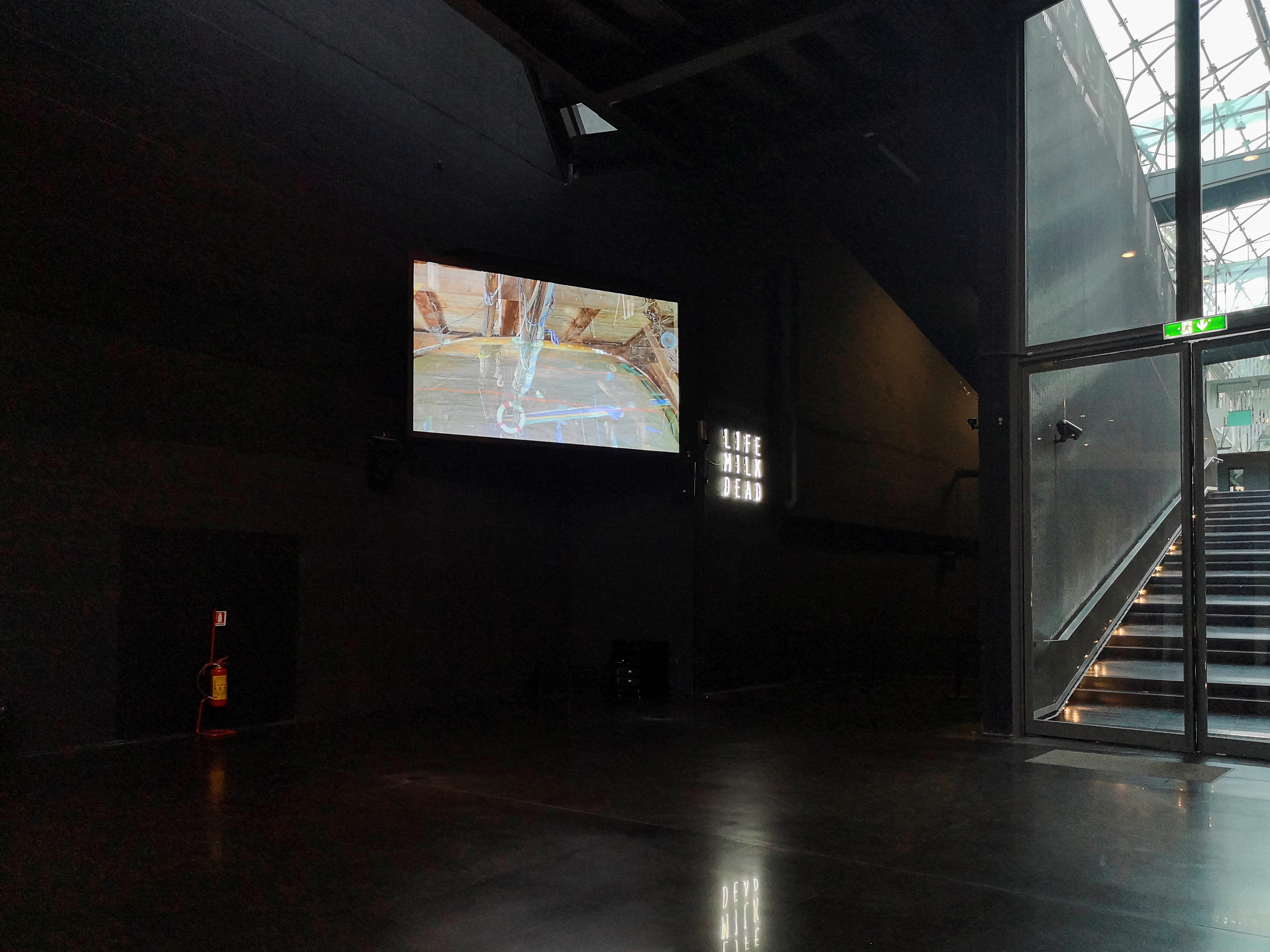 On the first day, we performed under the big screen of MACRO and talked to visitors about video formats, the smartphone as a prothesis and the general theme of the video exhibition „inside/outside“. The videos deal with different themes ranging from dreamlike surrealist sceneries, bodytopics like breathing to political works dealing with refugees or migration; there are also works about space, fullness and emptiness from a sculptural point of view