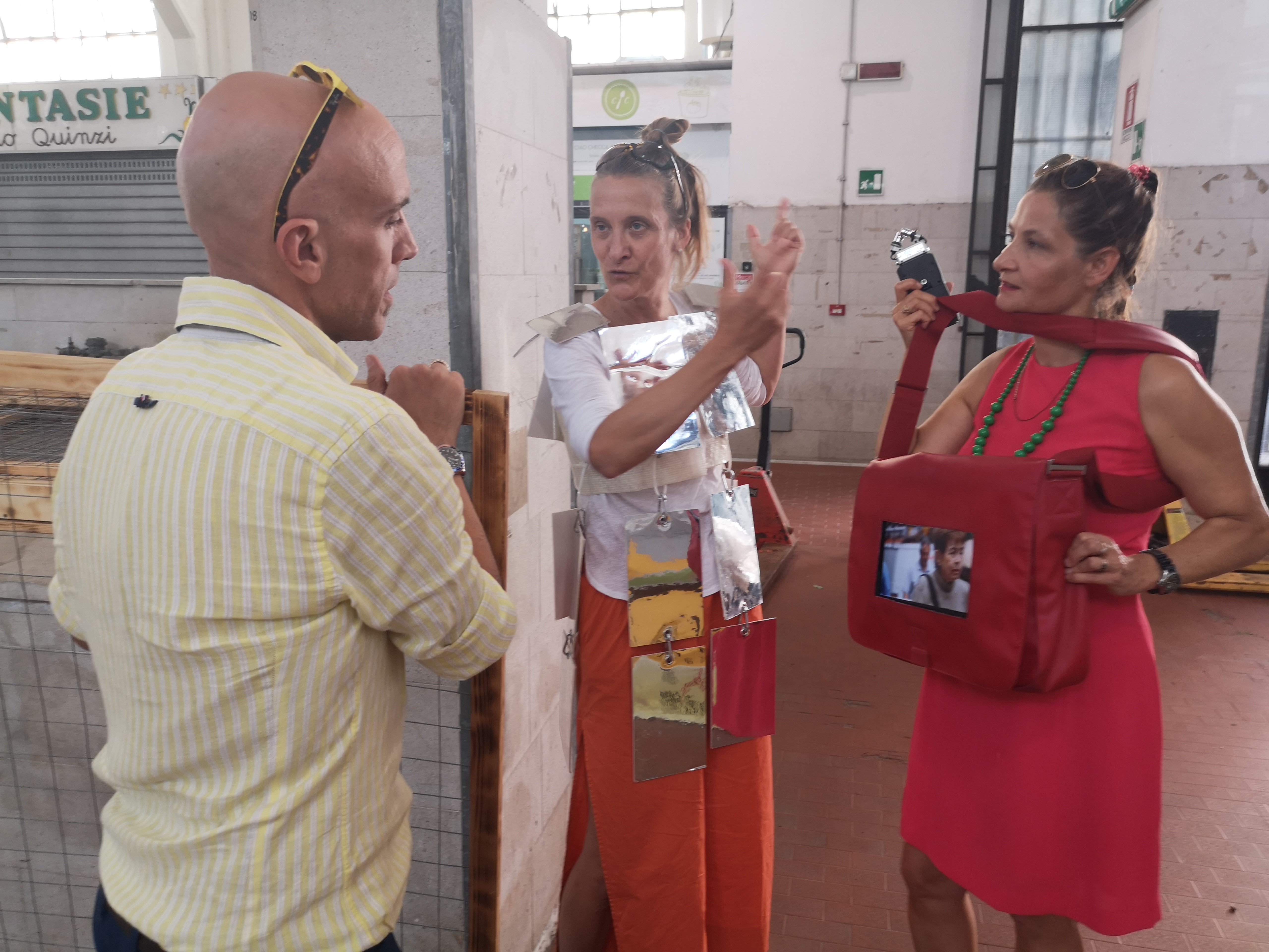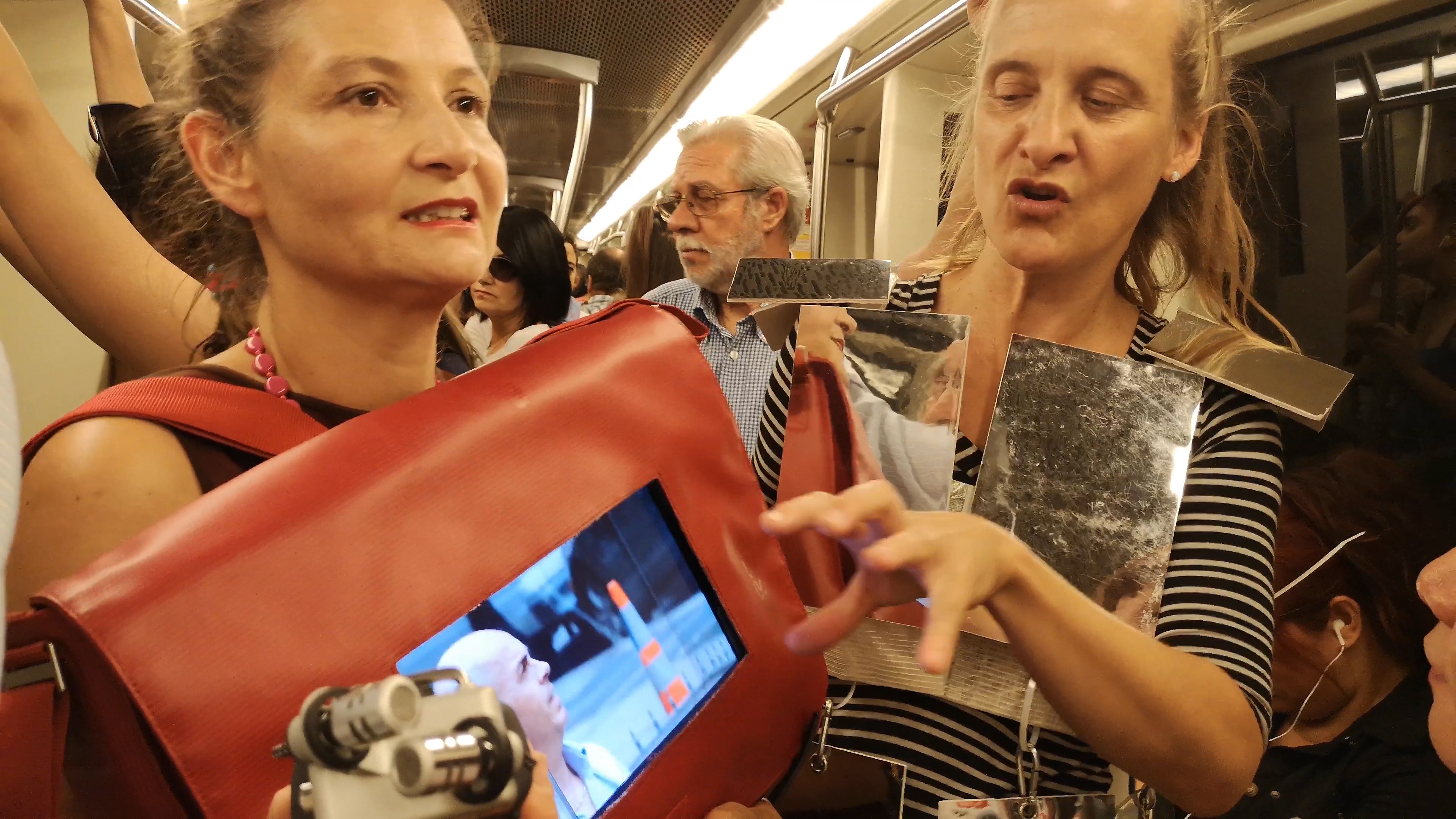 The Roman Subway Linea C was an ideal background for talking to people who just love to look at their smartphones while waiting for the next stop. People were interested in pondering about how much smartphones change their lives and how much they depend on them. The location was very appropriate for viewing small sized videos on tablet thanks to the atmosphere of the typical „non-lieu“. The reflecting mirrors were very effective in multiplying perspectives.